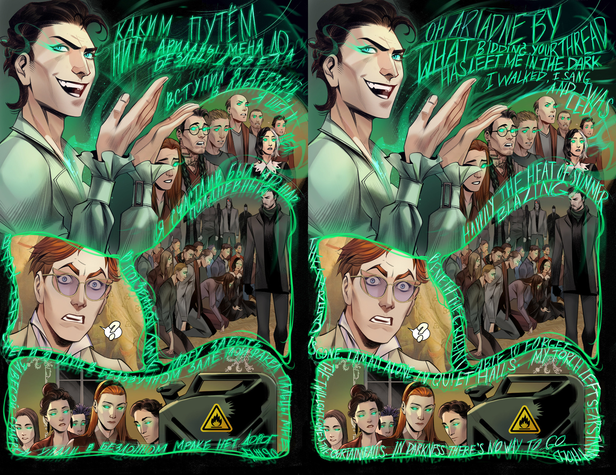 Bildretusche und Lettering für die englische Version der russischen Comics von BUBBLE. Erstellt mit Adobe Photoshop und Paint Tool SAI.
