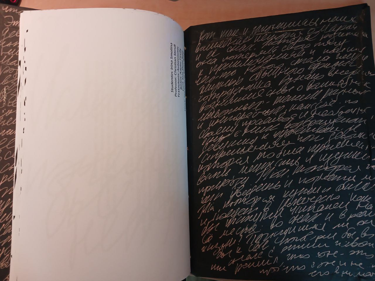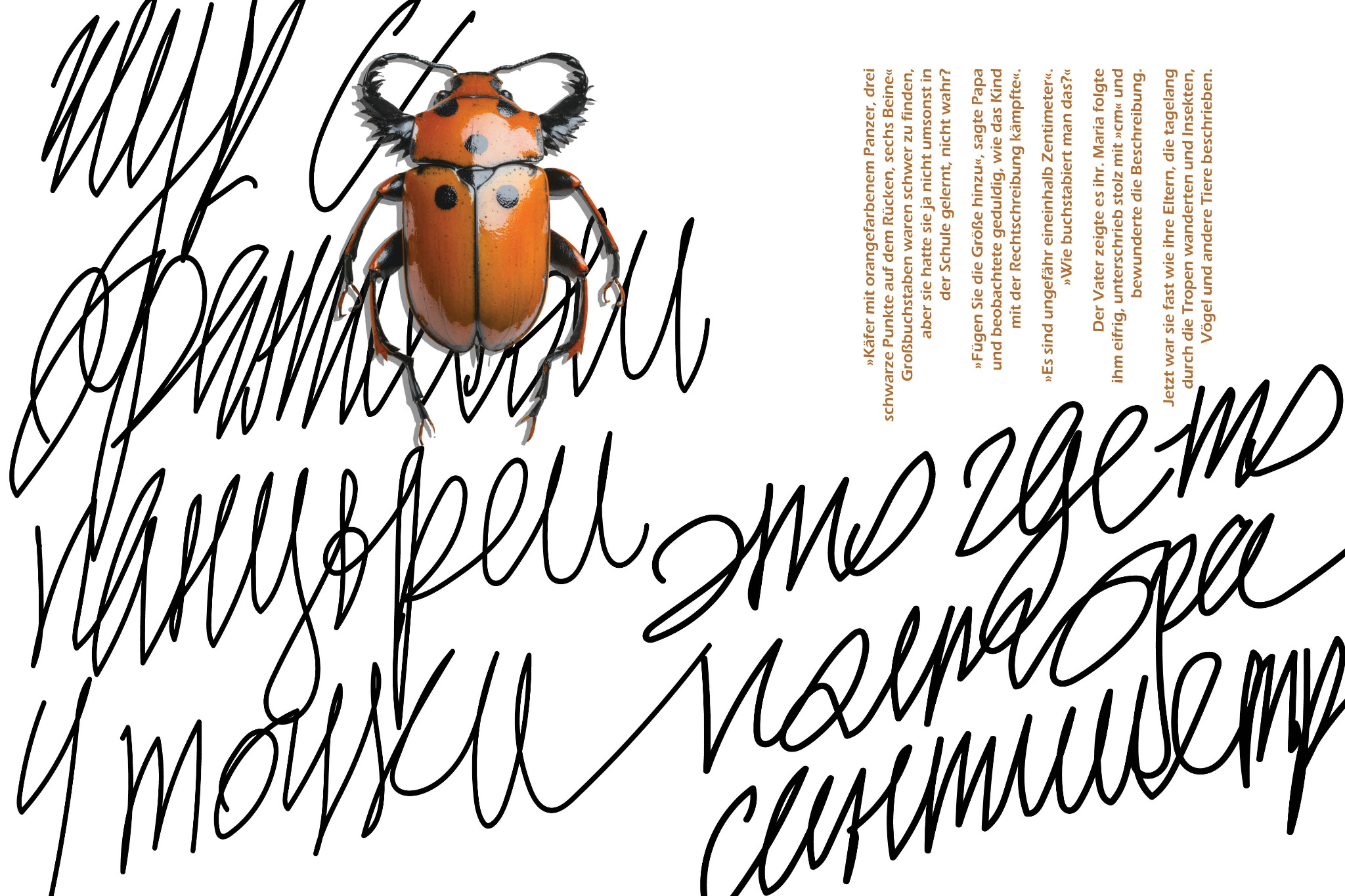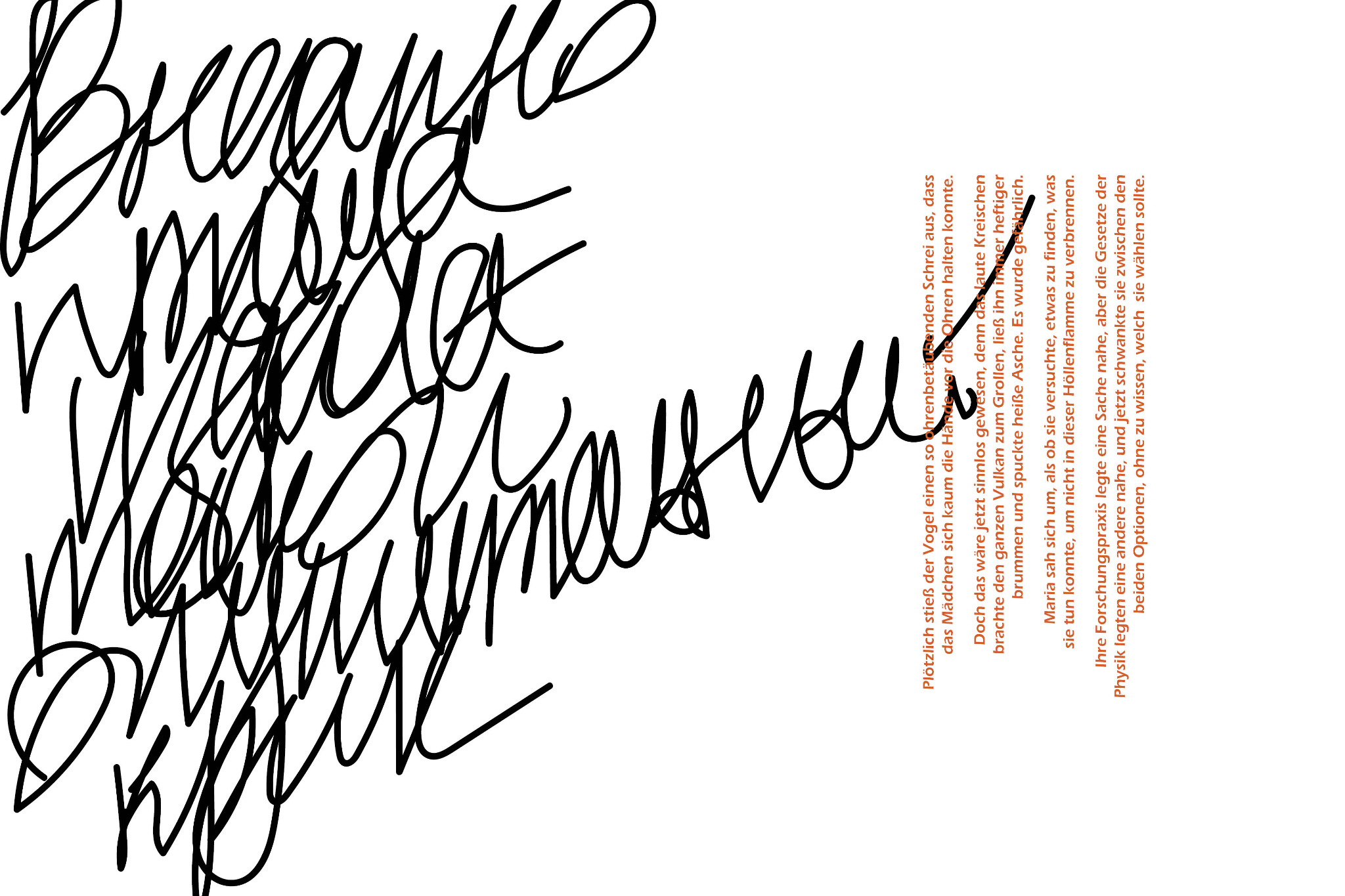 Ich verwendete eine Serifenschrift und eine handschriftliche Kursivschrift, in der Teile des deutschen Textes auf Russisch wiedergegeben wurden.