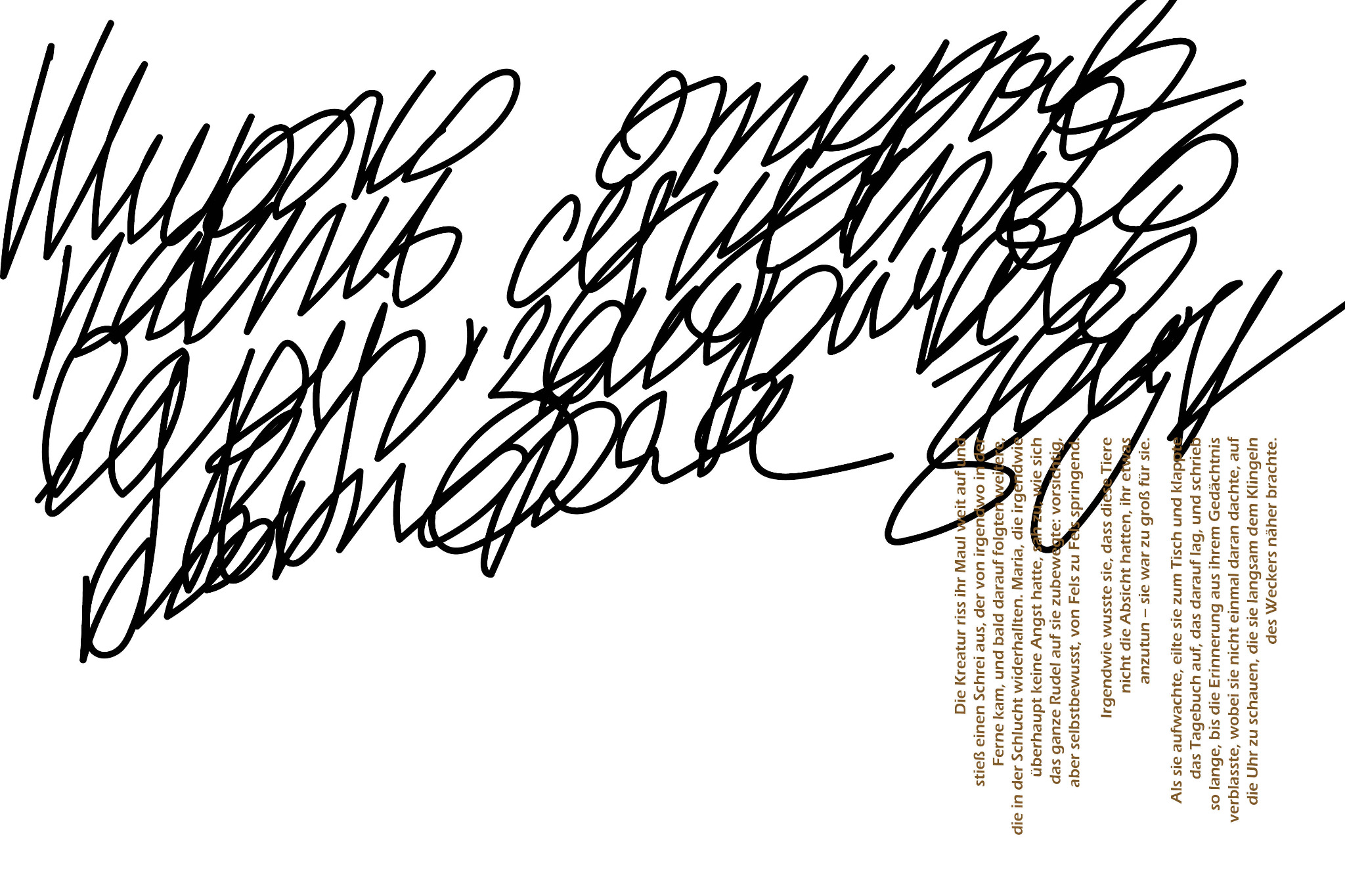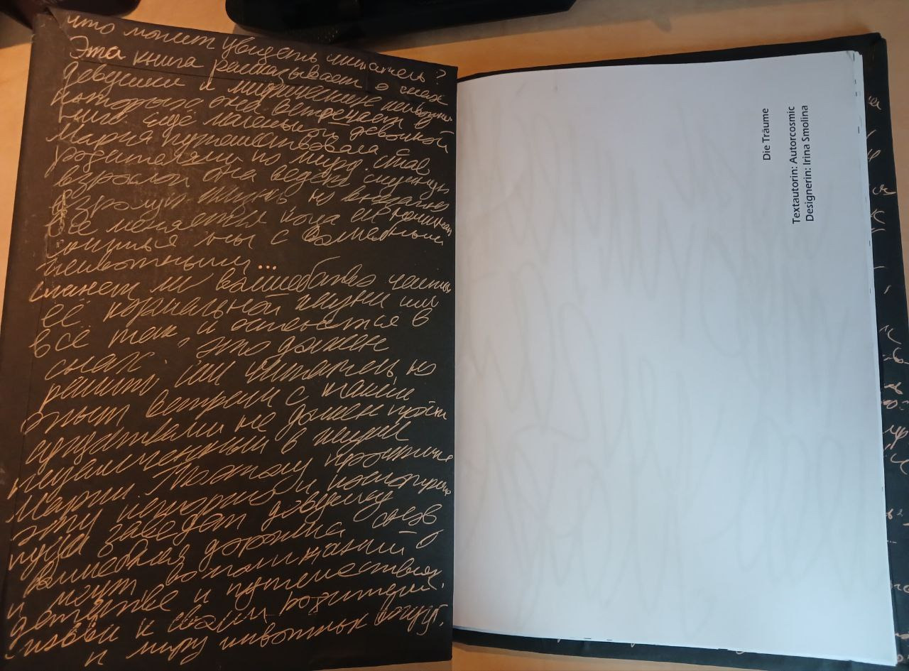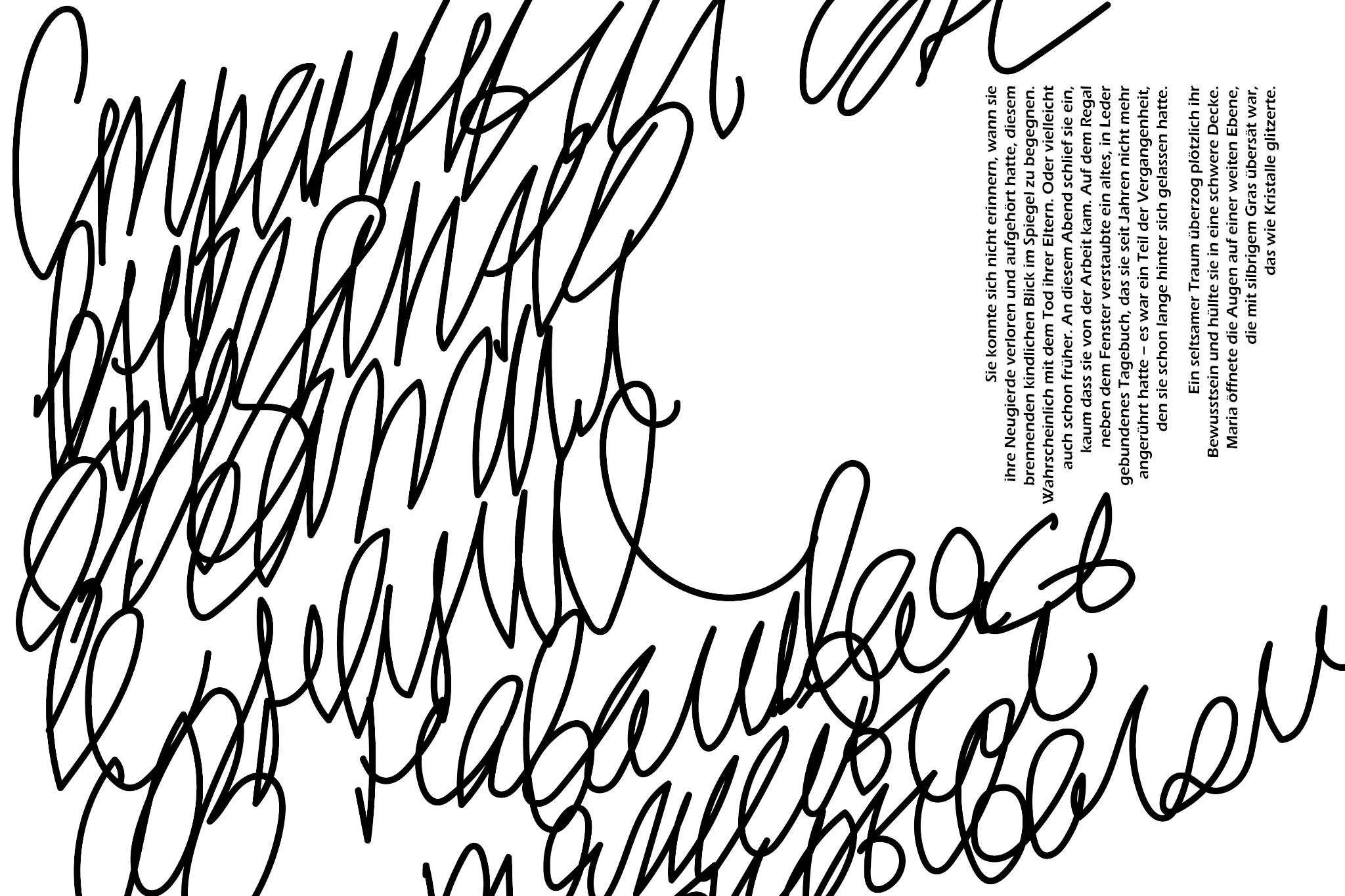 Ich verwendete eine Serifenschrift und eine handschriftliche Kursivschrift, in der Teile des deutschen Textes auf Russisch wiedergegeben wurden.