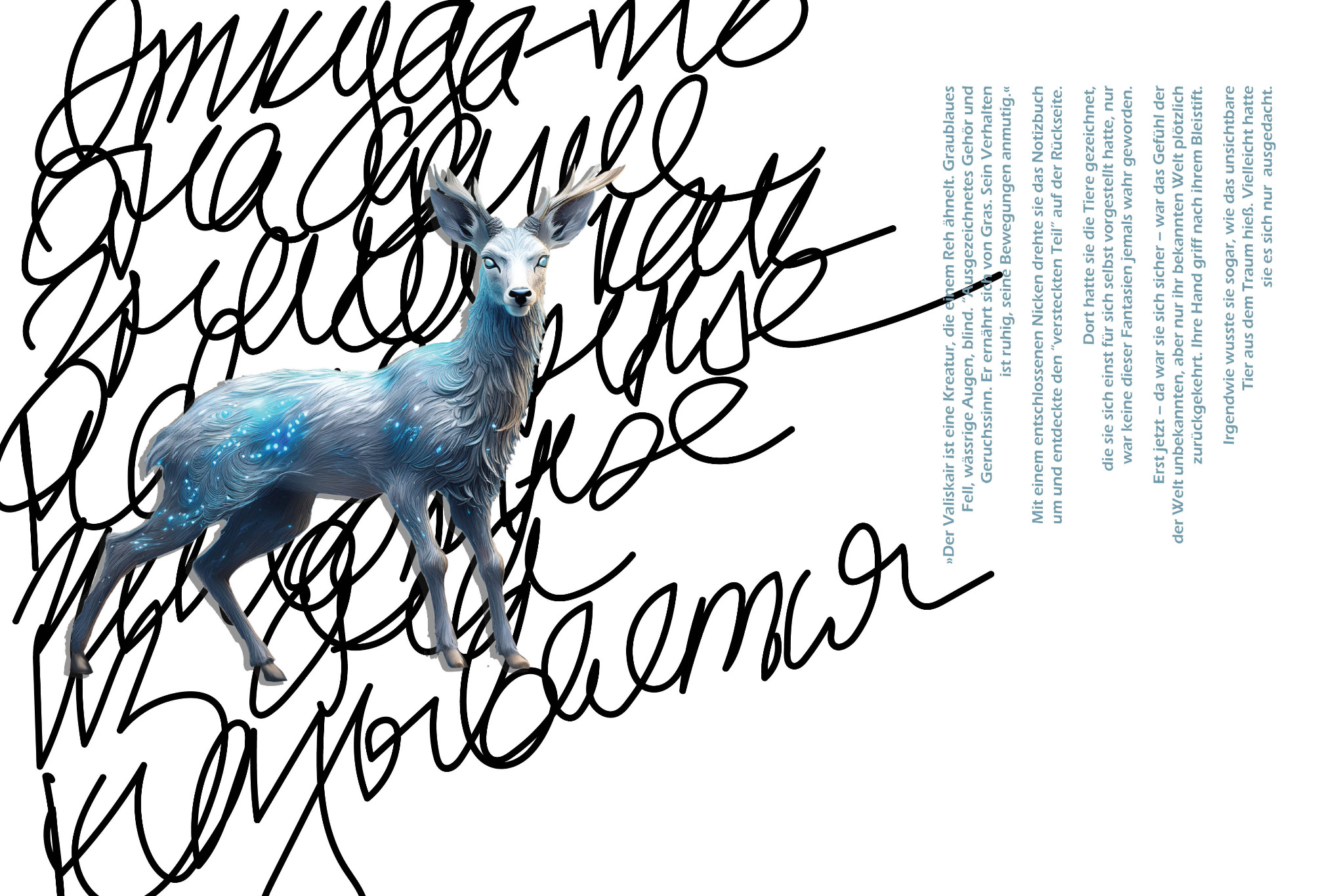 Ich bat eine reale Person, mir auf Russisch einen Text über ein Mädchen zu schreiben, das von mythischen Tieren träumt. Dieser Text wurde anschließend ins Deutsche übersetzt.